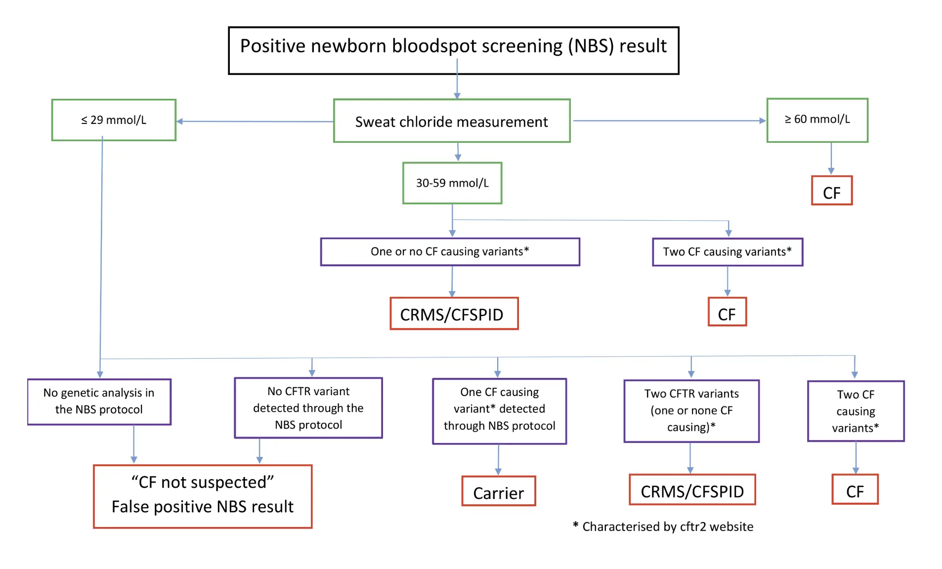 CF: Cystic fibrosis, CFTR: CF transmembrane conductance regulator (gene), CRMS: CFTR-related metabolic syndrome, CFSPID: CF screen-positive, inconclusive diagnosis